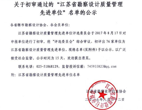 江蘇省工程勘察設(shè)計行業(yè)誠信單位誠信單位”的企業(yè)